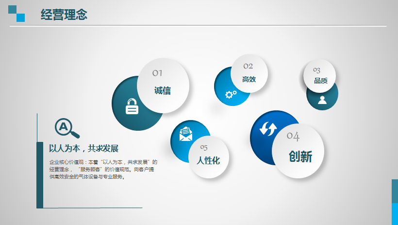 經(jīng)營(yíng)理念:以持續(xù)創(chuàng)新的技術(shù)、穩(wěn)定節(jié)能的產(chǎn)品、高效優(yōu)質(zhì)的服務(wù)贏取用戶(hù),成為氣體工程一站式解決方案服務(wù)商。