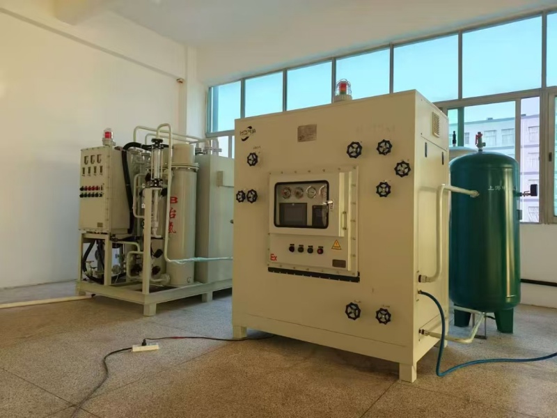 自動(dòng)氫氮配比機(jī)在眾多行業(yè)中都有著廣泛的應(yīng)用。在化工行業(yè),它被用于合成氨、甲醇等重要化工產(chǎn)品的生產(chǎn)過(guò)程中,為化學(xué)反應(yīng)提供精確比例的氫氮混合氣,提高產(chǎn)品收率和質(zhì)量。在電子行業(yè),氫氮混合氣常用于半導(dǎo)體芯片的制造和封裝工藝,自動(dòng)氫氮配比機(jī)能夠確保氣體配比的穩(wěn)定性,滿足電子元器件對(duì)氣體純度和比例的嚴(yán)格要求。在金屬熱處理行業(yè),氫氮混合氣作為保護(hù)氣體,能夠防止金屬在加熱過(guò)程中氧化和脫碳,自動(dòng)氫氮配比機(jī)的應(yīng)用,使得金屬熱處理的質(zhì)量得到了明顯提升。